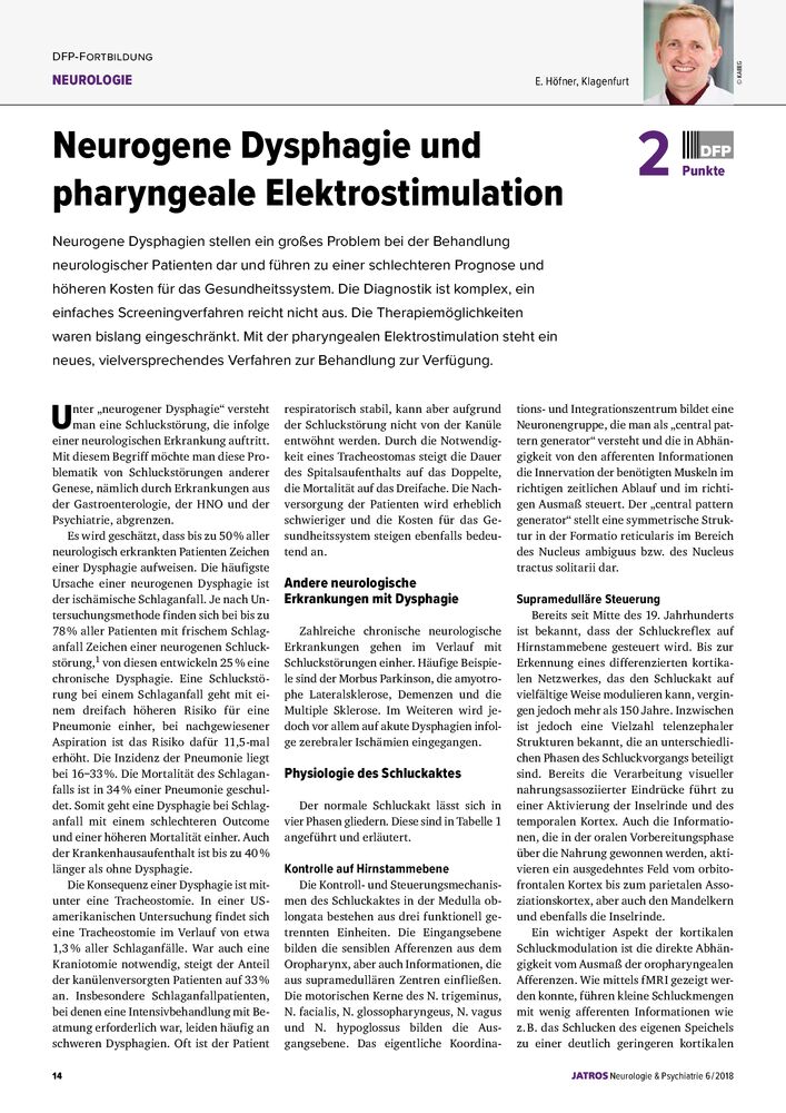 Für die richtige Beantwortung der Multiple-Choice-Fragen im Anschluss an den Fachartikel werden 2 Punkte für das Diplom-Fortbildungs-Programm der Österreichischen Ärztekammer zuerkannt.